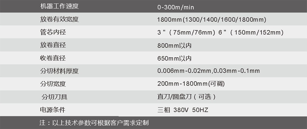 適用于分切端面不平整的卷材進行倒卷、大卷倒小卷或多個小卷倒成大卷,倒卷后端面平整